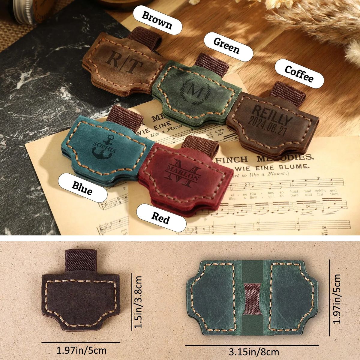 Each Color of This Leather Bookmark Can Be Customized with Logos, Text, Designs, Names, Art, 26 Letters Name Initial, Dates, Monograms, Themed Events and More