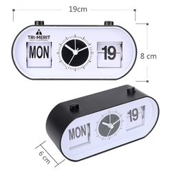 Once set correctly, it can display the time very accurately. It can be widely used in offices, families, desks and bookshelves, living rooms, bedrooms, study rooms, kitchens and other places. The time is displayed in the middle, will automatically move; the week and the calendar are on both sides of the clock, and every day, you need to manually press the small button to turn the page. 7 1/2" L x 2 5/16" W x 3 1/4" H